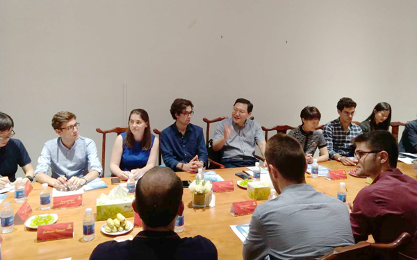 所在位置:首頁 - 新聞中心6月4日,受山東省青年企業(yè)家協(xié)會副會長、山東金城醫(yī)藥集團(tuán)董事長趙葉青先生邀請,“吳建民公益基金會”2019法國創(chuàng)業(yè)青年代表團(tuán)一行20余人蒞臨金城醫(yī)藥北京管理中心,就中國創(chuàng)業(yè)創(chuàng)新環(huán)境與投資合作機(jī)會進(jìn)行了參訪交流和研討分享。該代表團(tuán)由“吳建民公益基金會”資助,每年遴選10名法國有明確在華創(chuàng)業(yè)計劃的優(yōu)秀青年創(chuàng)業(yè)者,資助其從事與中法合作有關(guān)的創(chuàng)業(yè)活動。中國青年企業(yè)家協(xié)會副秘書長張華先生、吳建民公益基金會副秘書長王琳女士、法國大使館代表Guillaume Thibault先生、中關(guān)村創(chuàng)客小鎮(zhèn)國際交流中心主任劉紫洋女士、北京岳成律師事務(wù)所合伙人岳屾山先生等國內(nèi)知名企業(yè)家、專業(yè)人士出席此次活動。央視國際頻道對本次活動進(jìn)行了跟蹤報道。