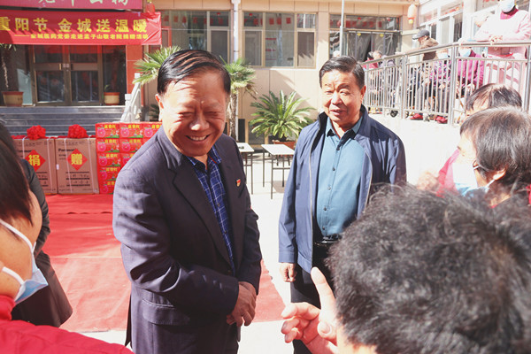 在捐贈儀式上,金城醫藥黨委書記、金城集團董事長趙鴻富為老人們送上了熱情洋溢的節日祝福。他說,重陽節到了,我代表金城醫藥黨委來看望大家,關心關愛老人也是我們的職責,公司這些年發展了,規模擴大了,品牌影響力提升了,這都得益于各級黨委政府和西河鎮家鄉父老的支持,公寓內有好多老人都曾經是金城公司的老員工,是你們給公司打下了堅實的發展基礎,你們是前輩、是基石,沒有你們的付出就沒有金城公司的今天。今天,在重陽節到來之際,我和集團黨委的幾位同志帶著一份敬意和心意來看望大家,希望老人和前輩們在這里能夠穿得住得干干凈凈、生活舒舒心心,安享晚年。公司也將繼續一如既往地關心支持敬老院的發展,盡公司最大能力向老人敬獻一份愛心。