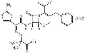 化學(xué)名稱:(6R,7R)-7-[[(2-氨基-4-曝陛基)-[(1 -羚基-1-甲基乙氧基)亞氨基]乙酰基]氨基]-2-羥基-8-氧代-5-硫雜-1-氮雜雙環(huán)[4.2.0]辛-2-烯-3-甲基吡啶鎓內(nèi)鹽五水合物.