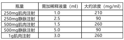 250mg肌肉或靜脈注射,500mg肌肉或靜脈注射,1g肌肉或靜脈注射,2g或3g靜脈推注: